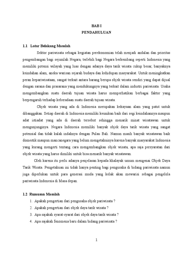 Bab Pendahuluan Pada Makalah Penelitian Tempat Wisata Duuwi Com