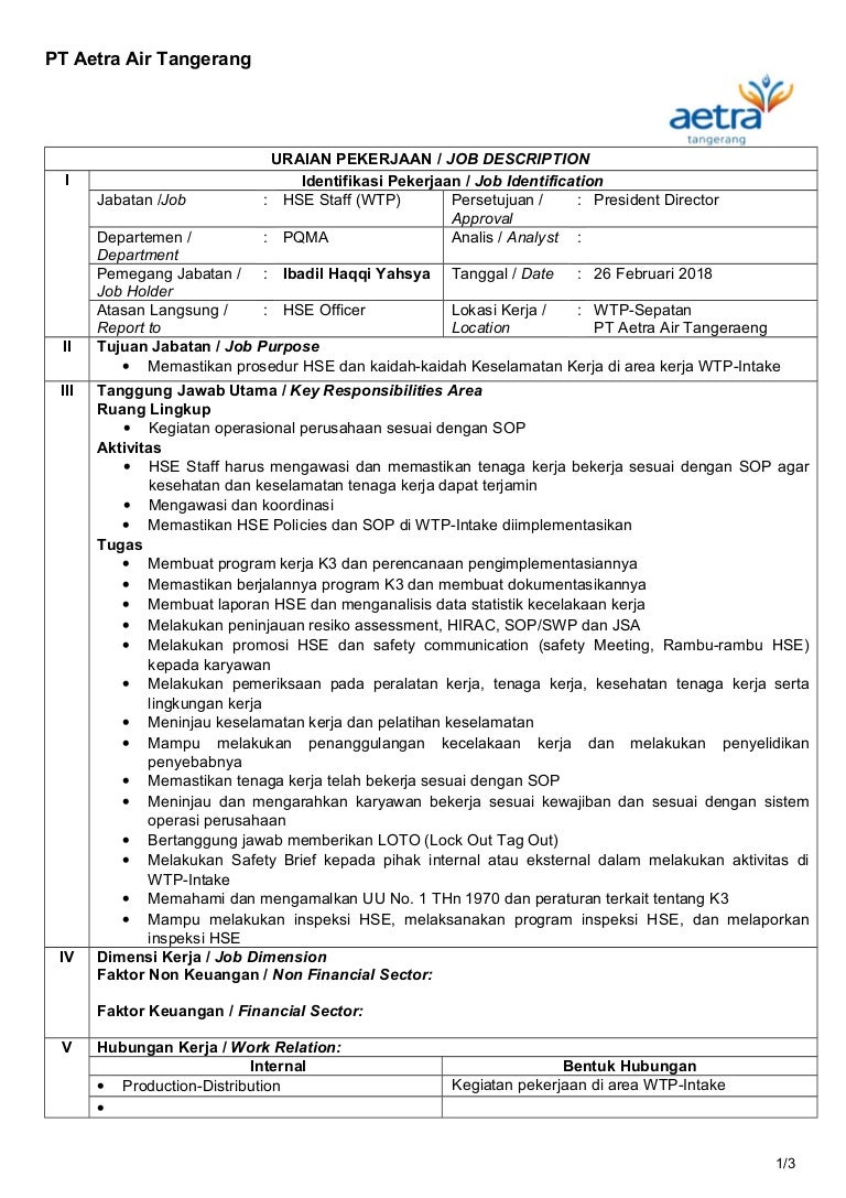 Pdf Deskripsi Pekerjaan Health And Safety Enviromental Hse Officer Robert Watania Academia Edu